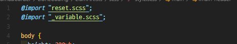 ※. scss 파일 앞 제목에 _(언더바)를 붙이면 scss 파일을 css 파일로 컴파일해도 css 파일로 변환되지 않는다.