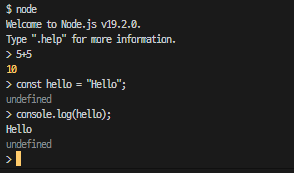 터미널에 node라고 입력하고 내가 확인하고 싶은 간단한 내용을 타이핑하면 된다. ( Node.js 가 깔려있어야 함 )