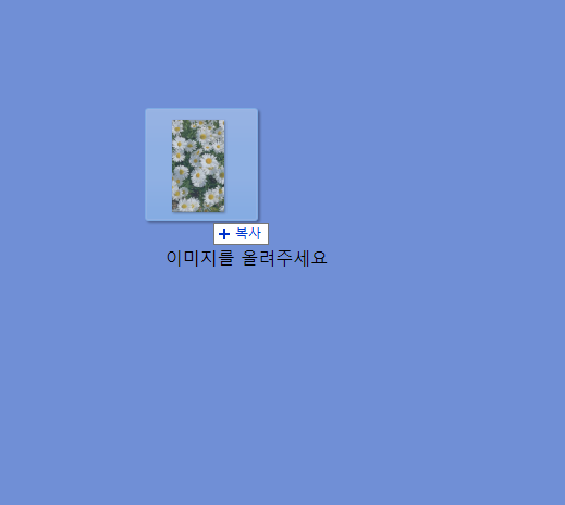 on 이라는 클래스를 이용하여 이미지가 dragover과 dragleave 됐을 때의 시각적인 효과를 부여한다.