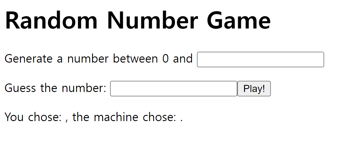 4. 0부터 내가 선택한 숫자 범위 내에서 "Play!" 버튼을 누를 때마다 랜덤으로 숫자를 생성하여 비교할 숫자와 크기를 비교한다.