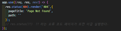 head.ejs에서는 동적 랜더링을 위해 title를 <%= pageTitle %>과 같이 설정해 줬다.