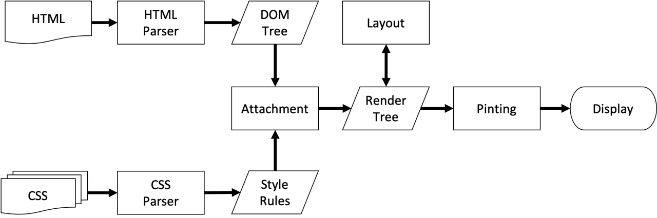 리액트는 가상 돔을 사용하여 웹 애플리케이션의 성능을 극대화 시켰습니다. 가상 돔을 이해하기 위해서는 우선 HTML과 CSS가 렌더링(Rendering) 되는 과정을 이해할 필요가 있습니다.