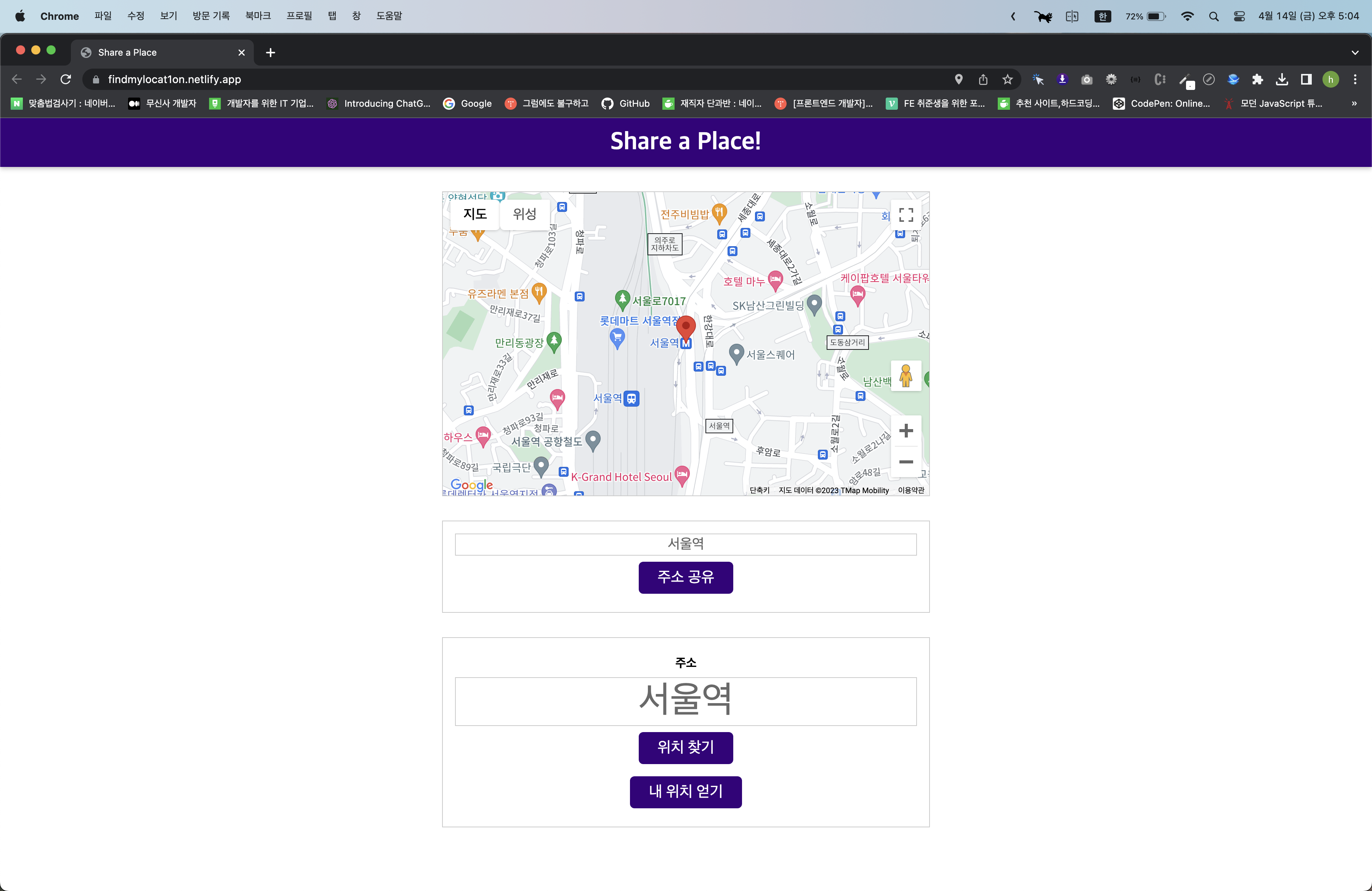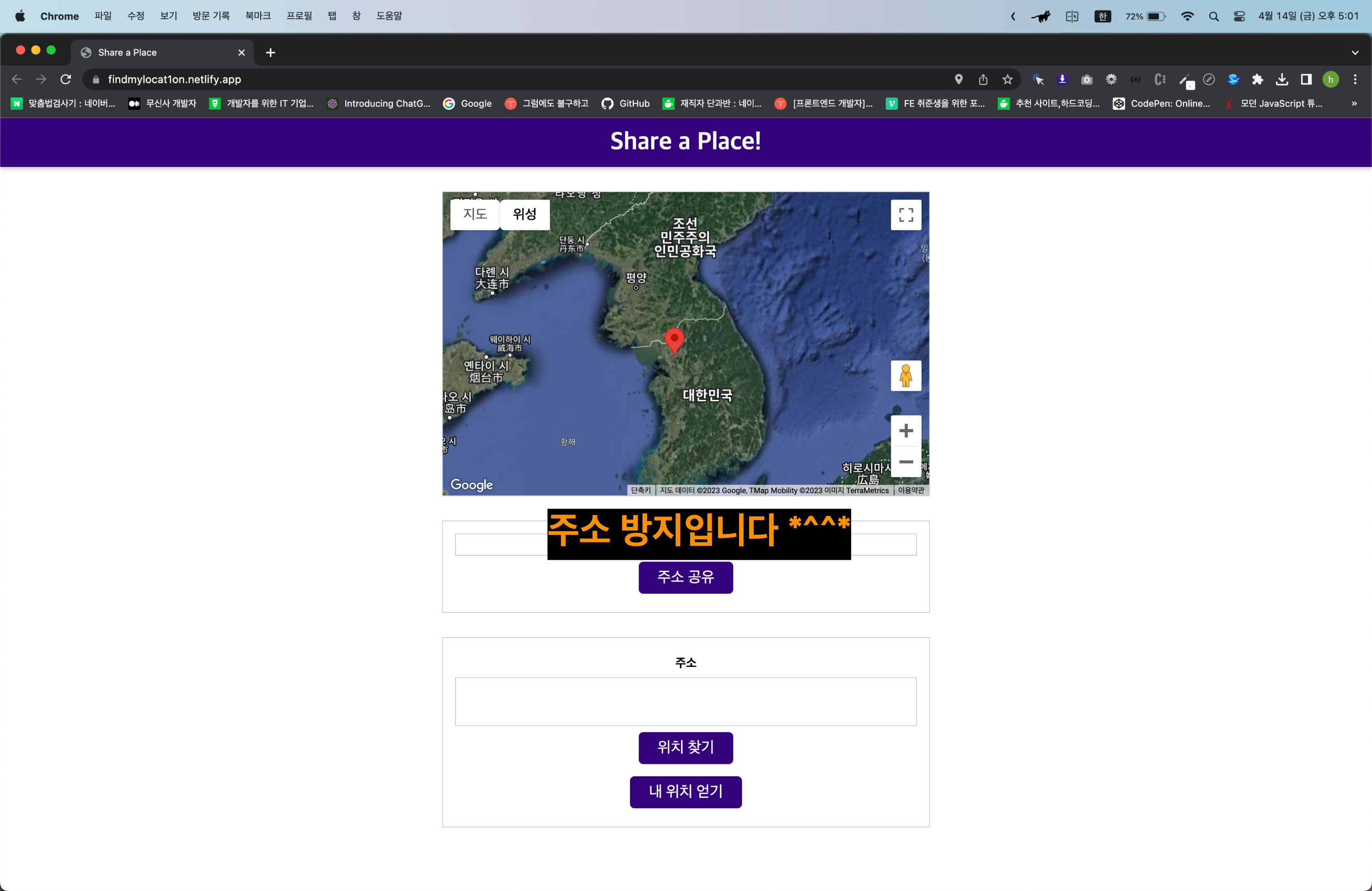 Google maps platform API 사용하여 내 위치 찾기, 위치 검색, 위치 공유 할 수 있는 페이지를 만들어보겠습니다.