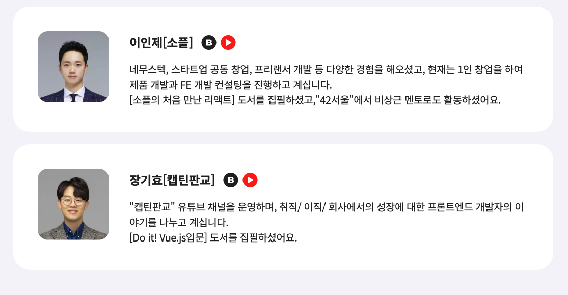 다들 어디서 한 번씩은 들어본 적 있는 유명한 분을 만나 뵙게 되어 영광이었습니다! ( 특히 캡틴판교님 인강을 보고 있는데 더 반가웠습니다 ㅎㅎ )