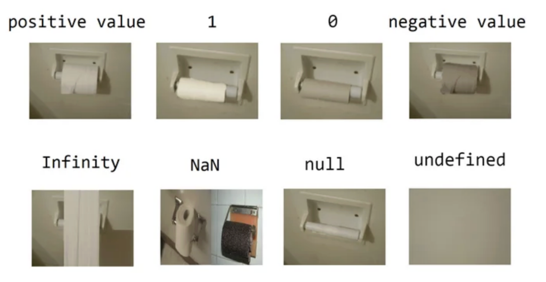 위의 사진은 JavaScript의 헷갈리는 타입들에 대해 나타내는 대표적인 사진입니다.