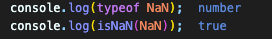 위에서 말했듯이 NaN의 type은 number입니다. 그렇지만 isNaN(NaN)의 결과는 true (= Not A Number)가 나와서 굉장히 헷갈립니다.