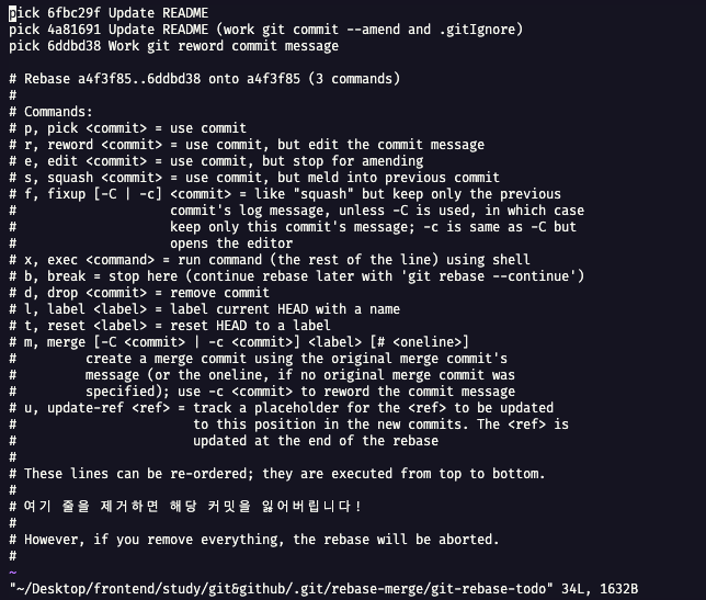 3. pick을 reword로 변경