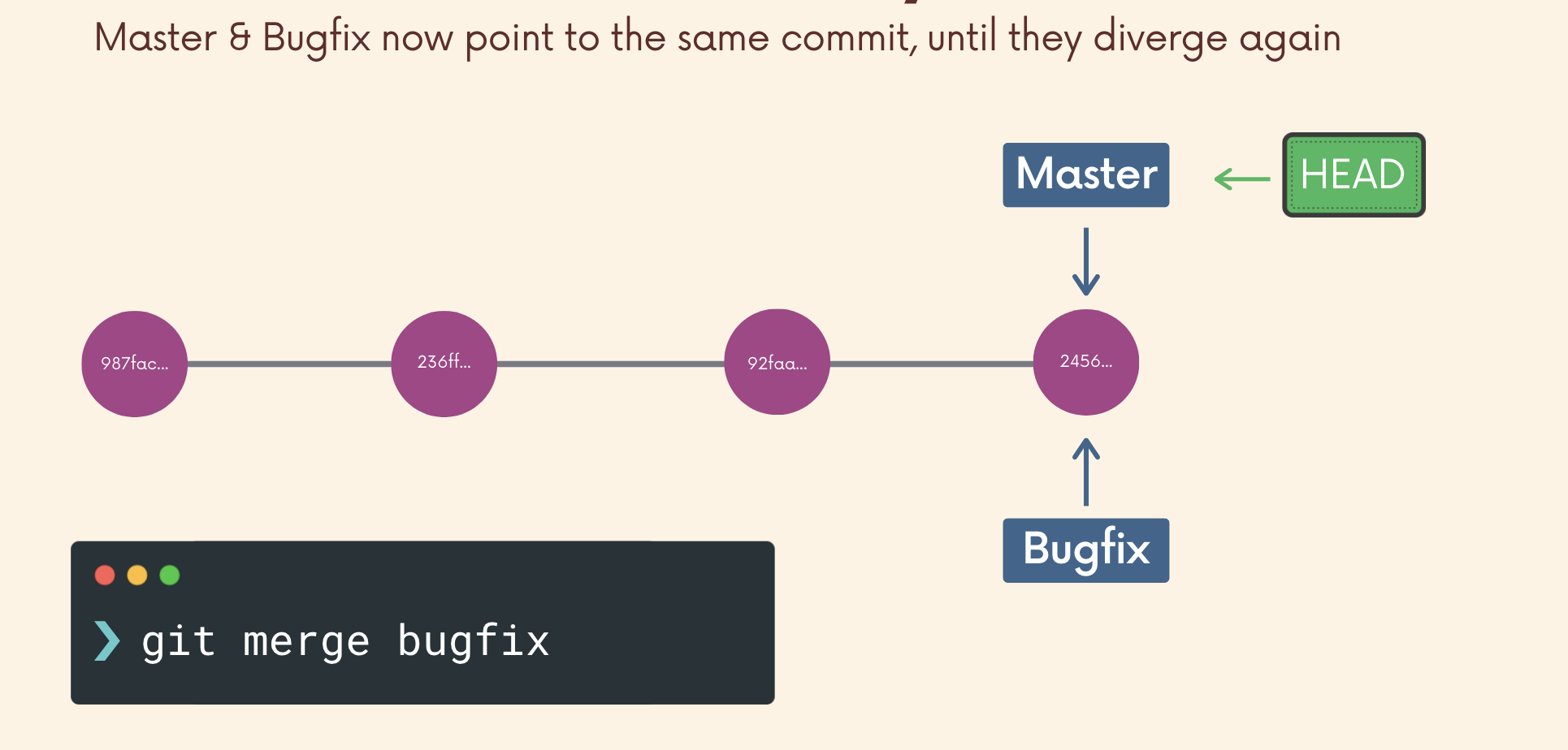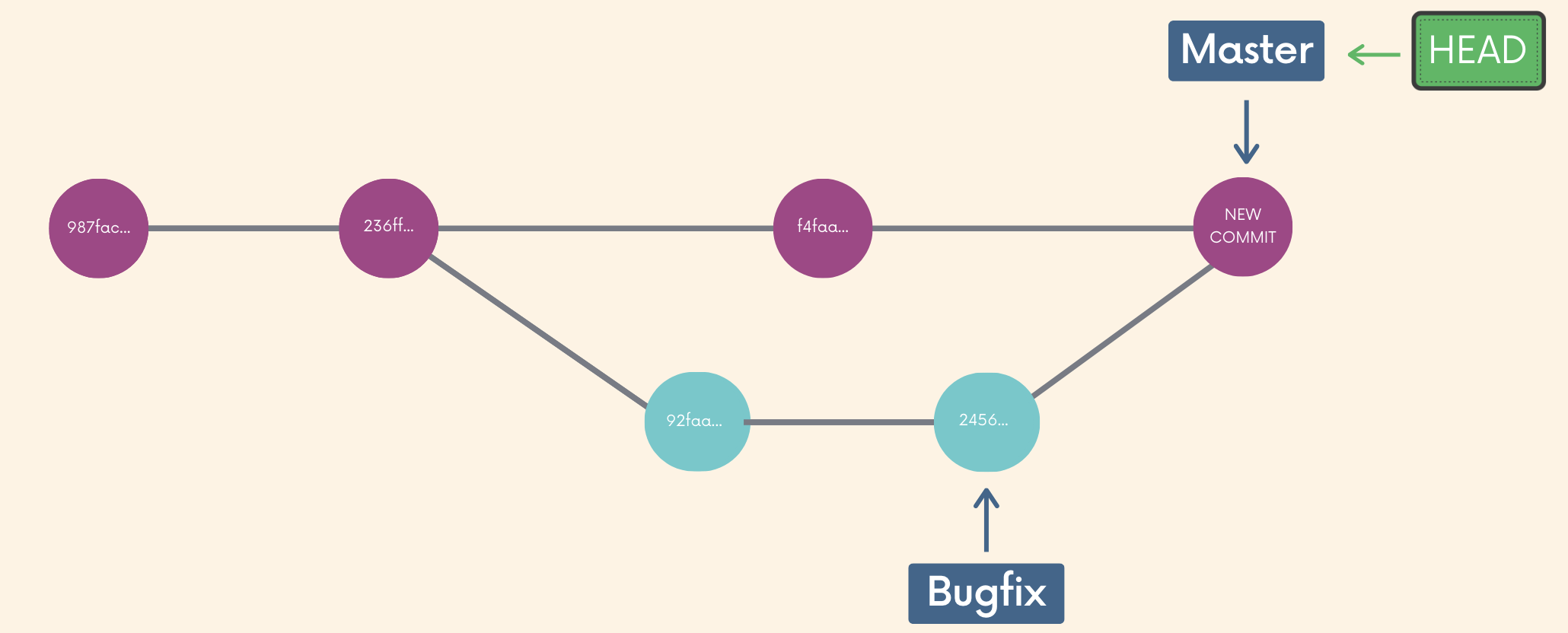 아래는 Master에서 branch 한 Bugfix를 Master로 merge는 과정을 담은 그림입니다.