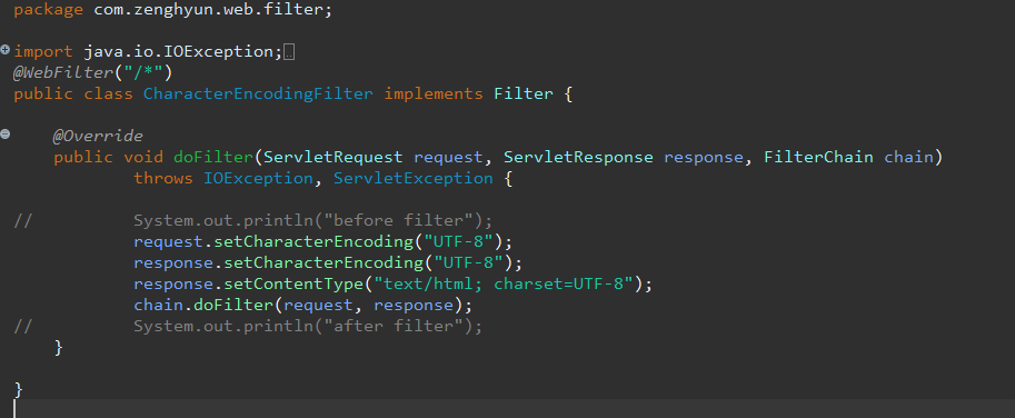 ※ @WebFilter("/*") : 모든 경로에 있는 파일에 이 filter를 적용시킨다.