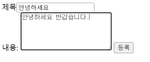 post.html 화면에서 제목과 내용에 한글을 입력하고 등록을 누르면