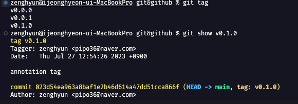 annotation tag는 작성자의 이름과 이메일, 날짜, tagging message (예: commit message)를 포함한 추가 메타 데이터를 저장합니다.