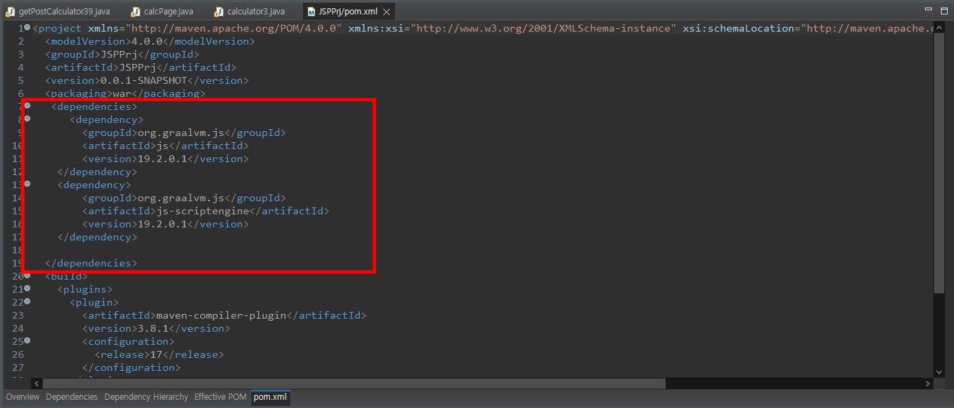 <dependencies> <dependency> <groupId>org.graalvm.js</groupId> <artifactId>js</artifactId> <version>19.2.0.1</version> </dependency> <dependency> <groupId>org.graalvm.js</groupId> <artifactId>js-scriptengine</artifactId> <version>19.2.0.1</version> </dependency> </dependencies> 삽입