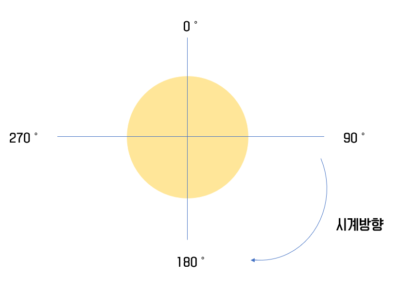 각도는 선형 그러데이션에서 색상이 바뀌는 방향을 지정하는 것을 말한다.