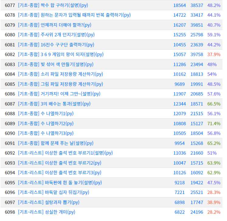 여기서 6077번부터 6098번까지의 문제를 풀어서 리뷰할 예정이다.