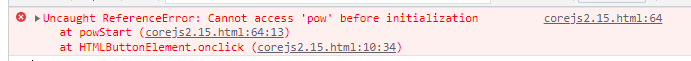 만약 pow(checkNum(x), checkNum(y)); 를 함수 표현식을 정의하기 전에 호출을 한다면 아래와 같은 오류가 발생한다.
