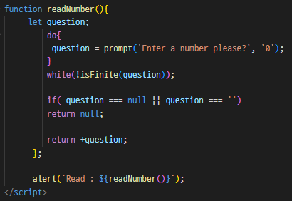 그래서 문자를 입력받으면 다시 호출해야 하는데 여기서 return readNumber();를 사용했다.
