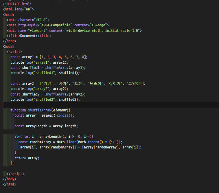 배열을 섞을 수 있는 메서드를 만들어보자.