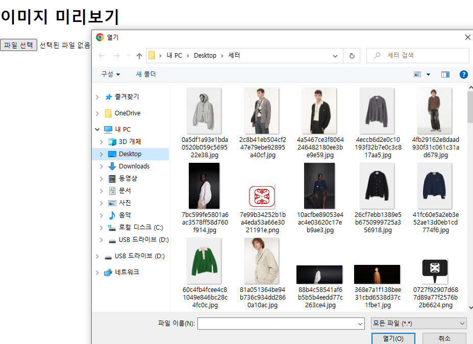 이렇게 파일 형식이 자동으로 지정되어 있다. 하지만 모든 파일로 바꾸면 accept 속성을 지정해도 올라간다는 단점이 있다.