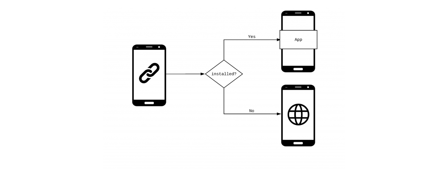예를 들어, 구글에 어떤 물건이나 음식을 검색하고 이커머스 웹을 누르면 해당 이커머스 앱의 다운로드를 유도하고 앱을 실행하면 제품 카탈로크 페이지 등으로 사용자를 바로 보내는 것을 말한다.