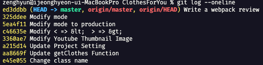 위와 같이 commit message만 축약된 log를 확인할 수 있습니다!!