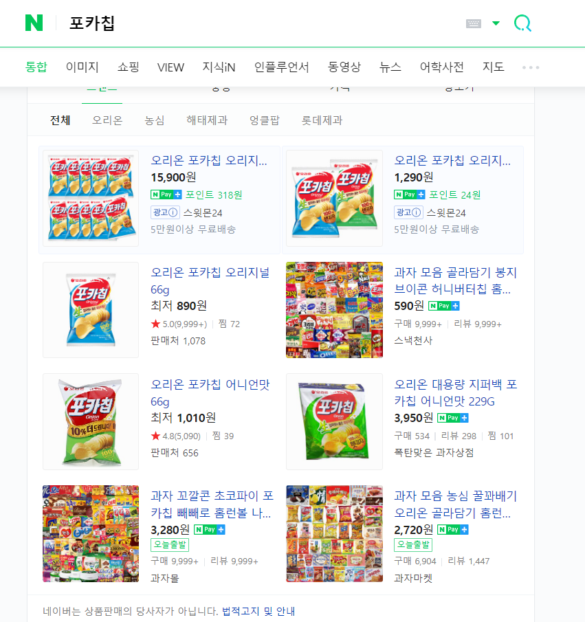 포카만 입력하고 버튼을 눌러도 자동으로 포카칩이 검색된다.